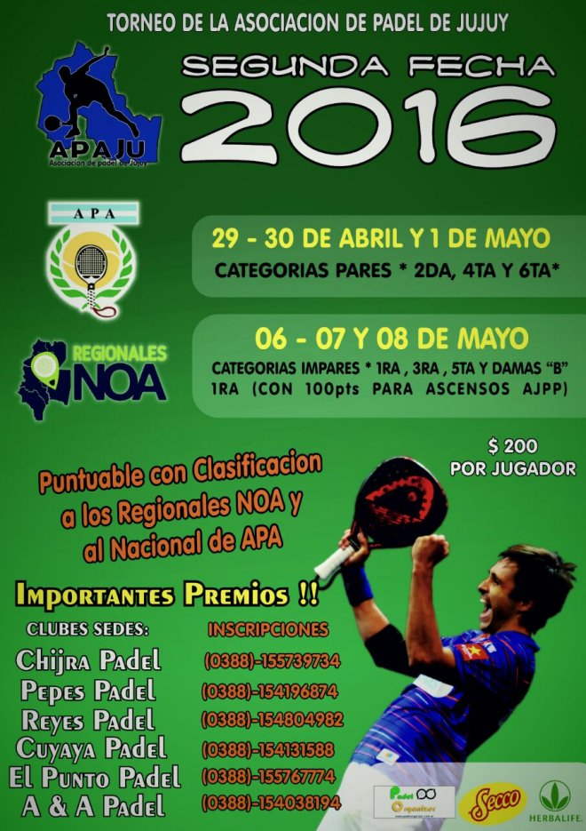 »» Evento: Fecha 2 -CIRCUITO APAJU- Impares »» Localidad: »» Fechas: 06/05/2016 al 08/05/2016