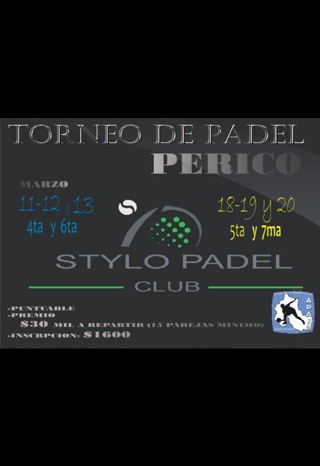 »» Evento: TORNEO CIUDAD DE PERICO 4TA 6TA CAT »» Localidad: Perico »» Fechas: 11/03/2022 al 13/03/2022
